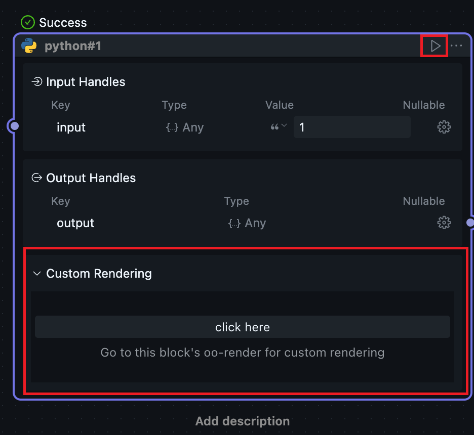 Since the Node.js preview / Python preview functionality provided by OOMOL Studio has limited scenarios, we provide custom UI to let users decide what content the Block can render or preview.