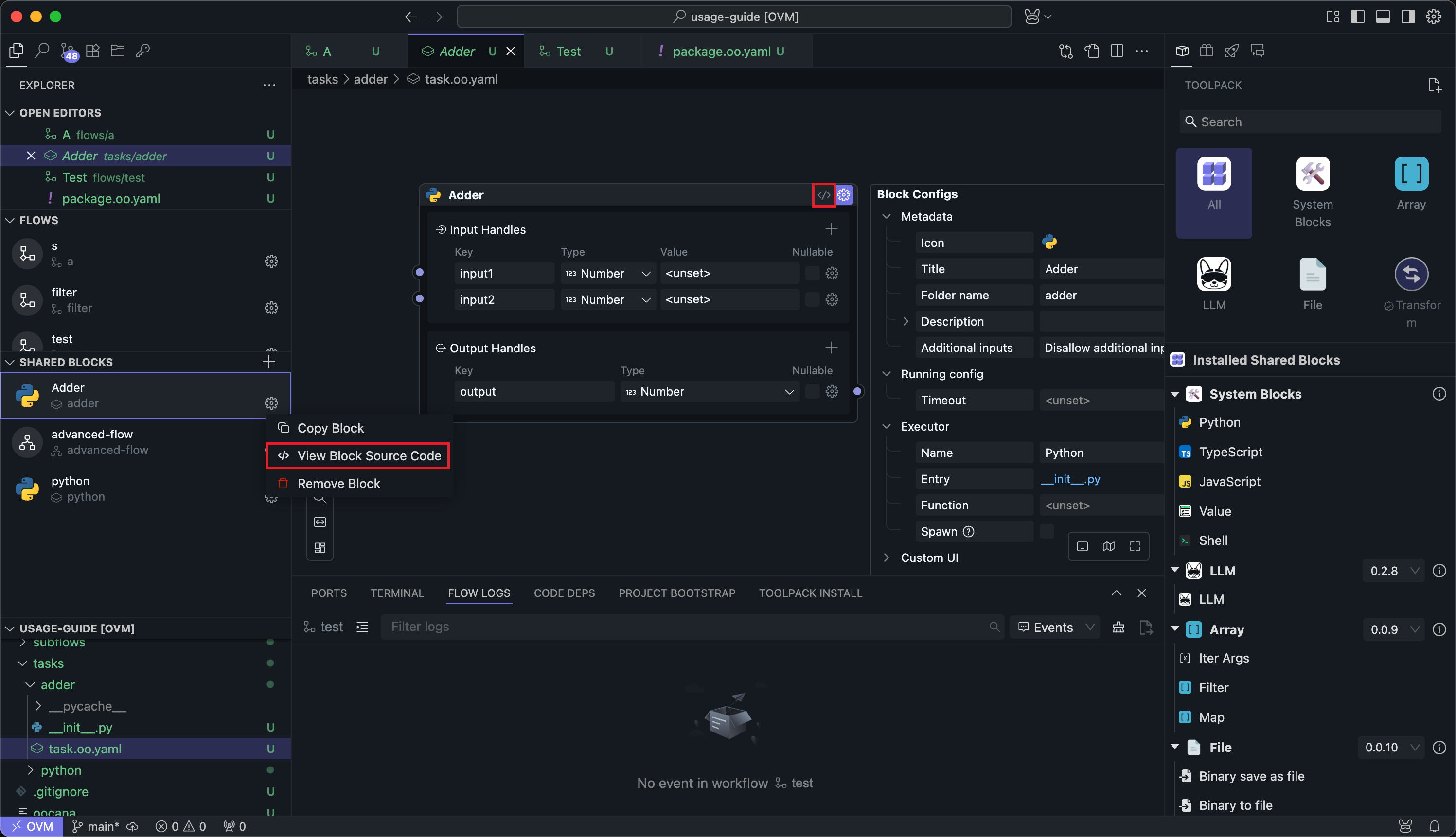 For local Task Blocks, you can edit the source code; otherwise, the source code is read-only.
